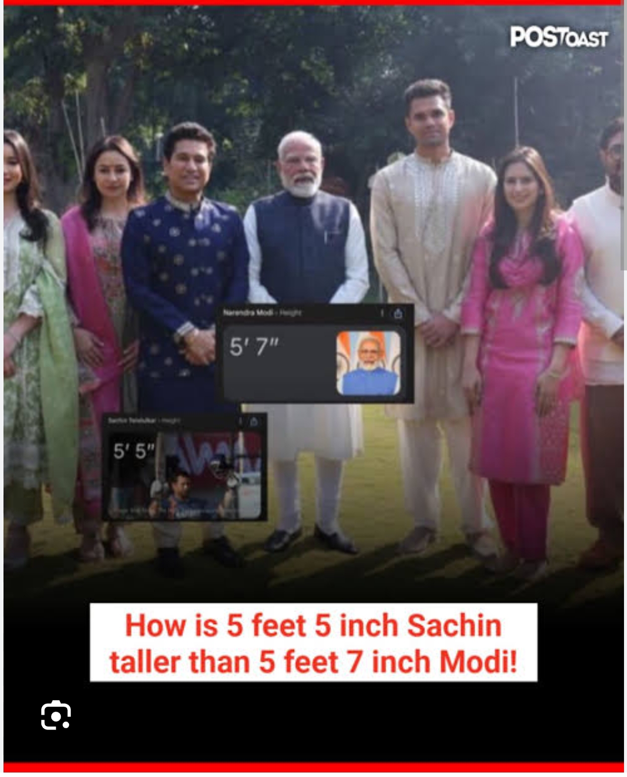 • পায়ের ছায়া দেখলে বোঝা যাচ্ছে যে প্রায় কাছাকাছিই দাঁড়িয়েছে দুজন। মাথায় মাথায় হাইট, বরং এই ছবিতে উনিজিকে সামান্য বেঁটে লাগছে সচিনের তুলনায়, যেটা অতি সামান্য পিছিয়ে দাঁড়ানোর জন্য হতে পারে।