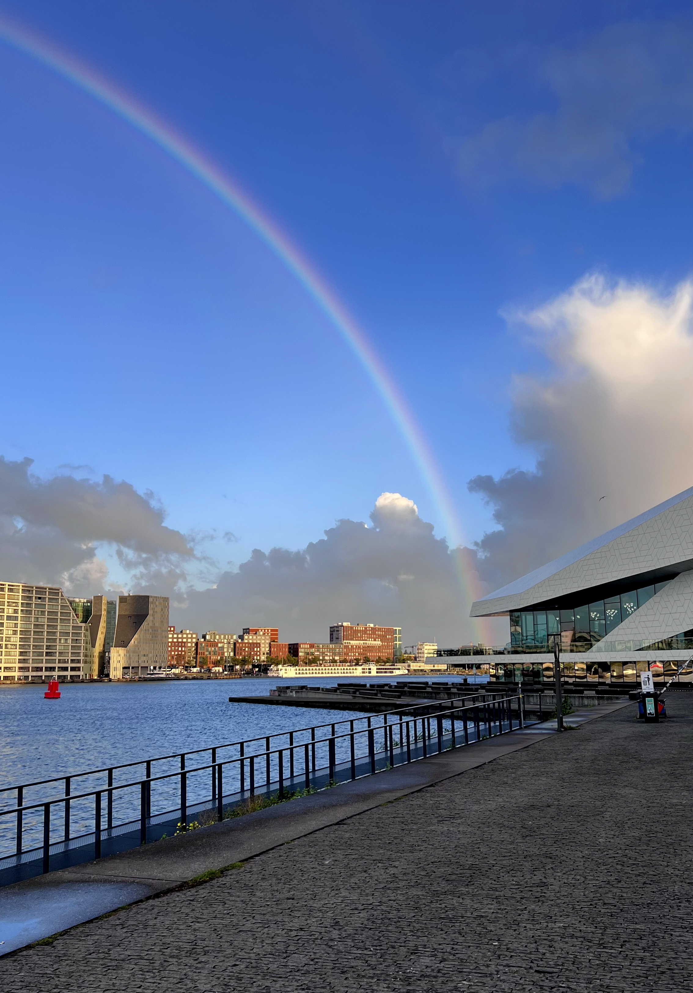 • সেদিন আমষ্টারডামে অফিস যাবার পথে দেখেলাম সুন্দর রামধনু উঠেছিল - এর মধ্যে দিয়েই উড়ে গেল কে এল এম এর উড়ান, একটুর জন্য সেটা মিস করলাম - তবে রামধনুটাও দেখতে দারুন লাগছিল শান্ত সকালে -