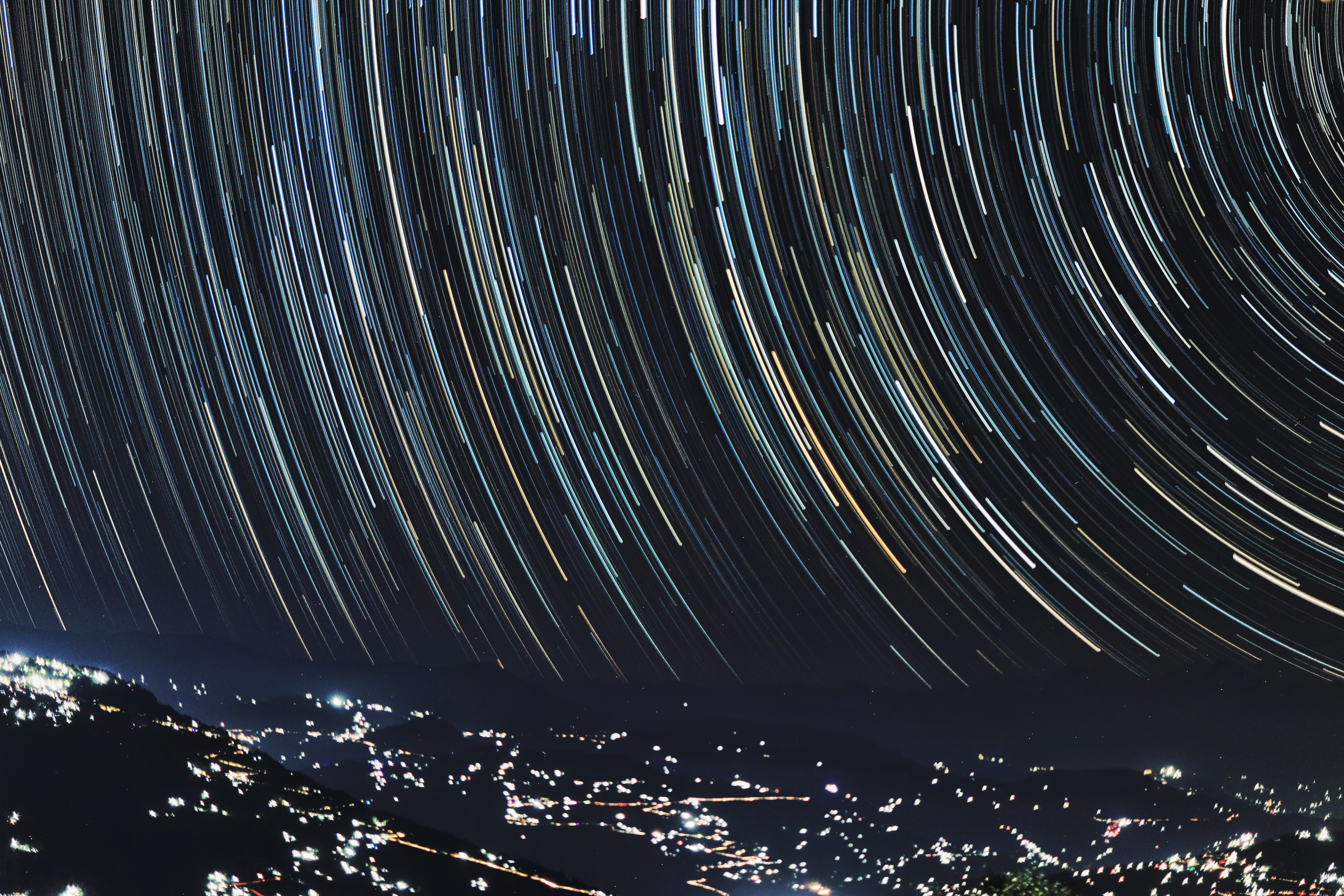 • আবার তারাপথ অথবা স্টার-ট্রেইল। এবার লামাহাটার ডোনজেংপা হোমস্টের অ্যাটিক থেকে তোলা।