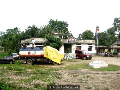 লখিমপুর পুলিশের অন্তর্গত চাউলধোয়া আউটপোস্ট ন্যশনাল হাইওয়ে ৫২র ওপরে সুবানসিরি ব্রিজের বেশ অনেকটা আগেই। কংক্রিটের অফিসবাড়ির সামনে অনেকটা খোলা জায়গা। তিনজন সি আর পি এফ বসেছিলেন একটা ফ্ল্যাগপোস্টের নিচে। অন্যপ্রান্তে একটা ইন্ডিয়ান অয়েল ট্যাঙ্কার দাঁড়িয়ে ছিল, তার সামনেটা একটা হলুদ প্ল্যাস্টিকের চাদরে ঢাকা। হাইওয়ে থেকে দেখা যাবে না, তবে ট্যাঙ্কারের পাশেই রয়েছে একটা টেম্পো। এর মধ্যে কিছু তেলের ড্রাম রাখা আছে। কিছু ঘর্মাক্ত শীর্ণ মানুষ, পরনে একটিমাত্র গামছা, ট্যাঙ্কার থেকে ড্রামে তেল নিয়ে আসছে। কয়েকজন পুলিশ নজরদারি করছে। চাংমাই একটা গাড়ির সামনে দাঁড়িয়ে ছিলেন। আমি নিজের পরিচয় দিয়ে ওনার সাথে কথা বলতে চাইলাম। উনি বললেন ওনার সিনিয়রের সাথে কথা বলতে। তিনিও সেখানেই ছিলেন।