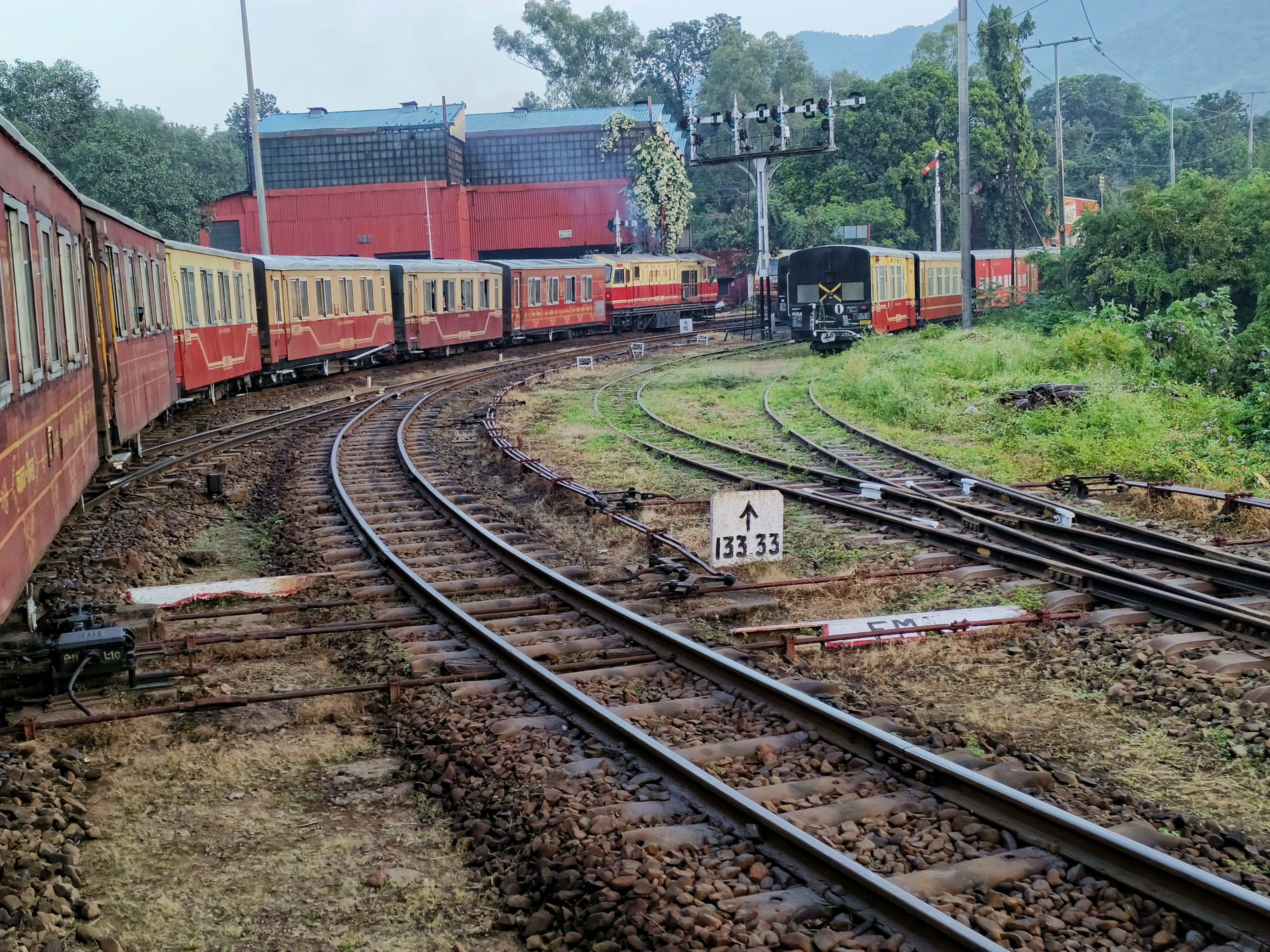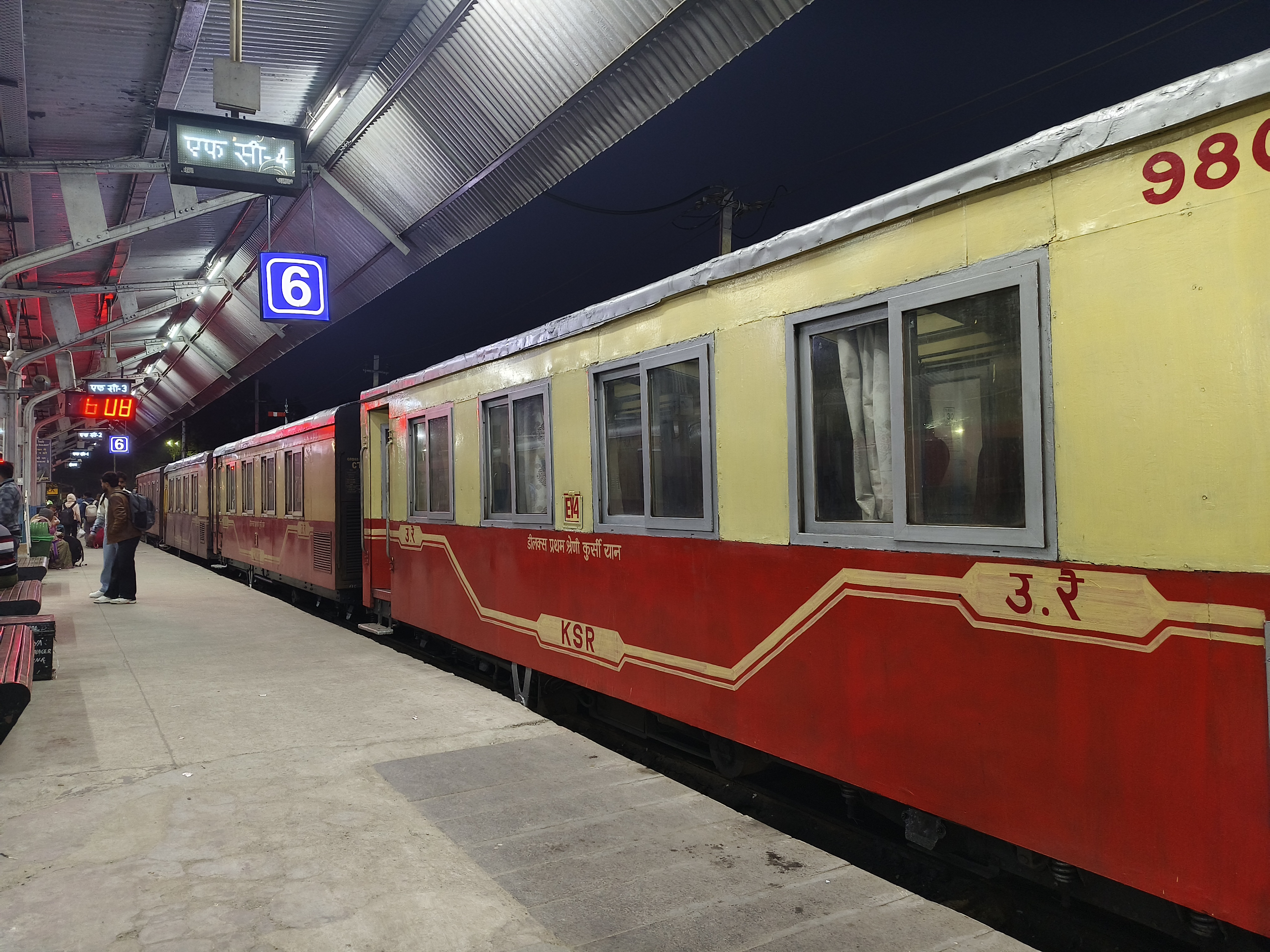 ট্রেন লেট না হওয়া প্রায় অসম্ভব তাই পৌঁছানোর নির্ধারিত সময়ের ৪ ঘন্টা পরে ৭টার টয়ট্রেনের টিকিট কেটেছিলাম। ভাগ্যিস! এদিকে টয়ট্রেন ছাড়ে ৫ এবং ৬ নম্বর প্ল্যাটফর্ম থেকে, যা কেবলমাত্র ওভারব্রিজ টপকেই যাওয়া যাবে।  তা গেলাম, একটা ৮ কেজির স্যুটকেস হাতে আর একটা ৮ কেজির ব্যাগ পিঠে নিয়ে ৪৬খানা সিঁড়ি উঠে আবার নামা।  এই পরিশ্রমে চোখে লেগে থাকা অবশিষ্ট ঘুম উধাও।