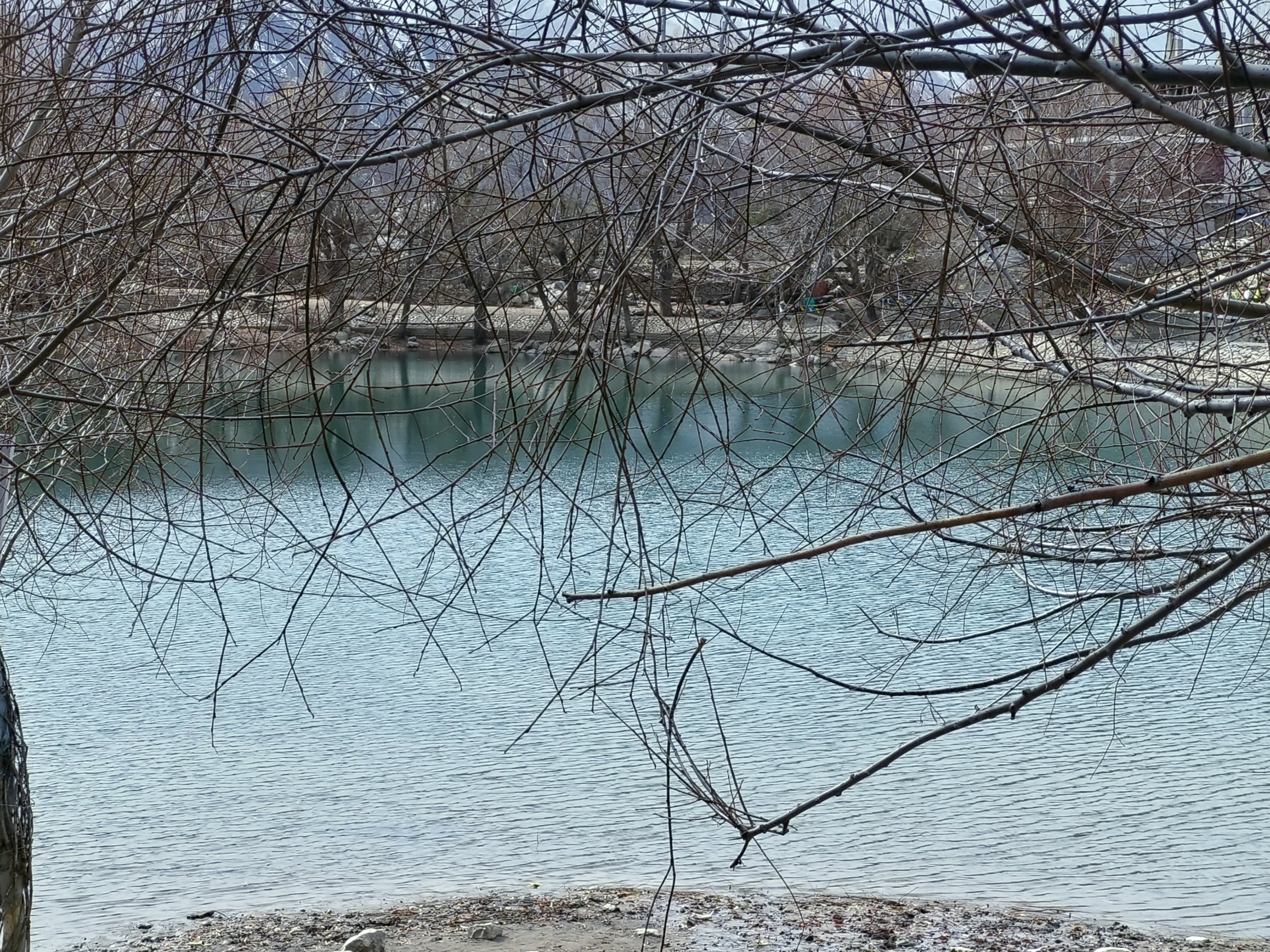 সারথীমশাই গেলেন স্থানীয়দের কাছে জিজ্ঞাসা করতে। আশেপাশে কয়েকটা বাসস্থান। গুগল ক্যানক্যান করে বলে চলেছে ইউভ রিচড। ডেস্টিনেশান ইজ অ্যাট ইওর রাইট। তা বটে, ঝুঁকে নীচে তাকালে পাতা ঝরে যাওয়া গাছের শুকনো ডালপালার ফাঁক দিয়ে জল দেখা যাচ্ছে।  সারথীমশাই ফিরে বললেন এটাই লেক। হ্যাঁ তা তো দেখতেই পাচ্ছি কিন্তু ধারে পৌঁছাবো কী করে? না ওওই যে সিঁড়ি, ওই ধরে নেমে যেতে হবে। আর নাকি কোনই রাস্তা নেই।
