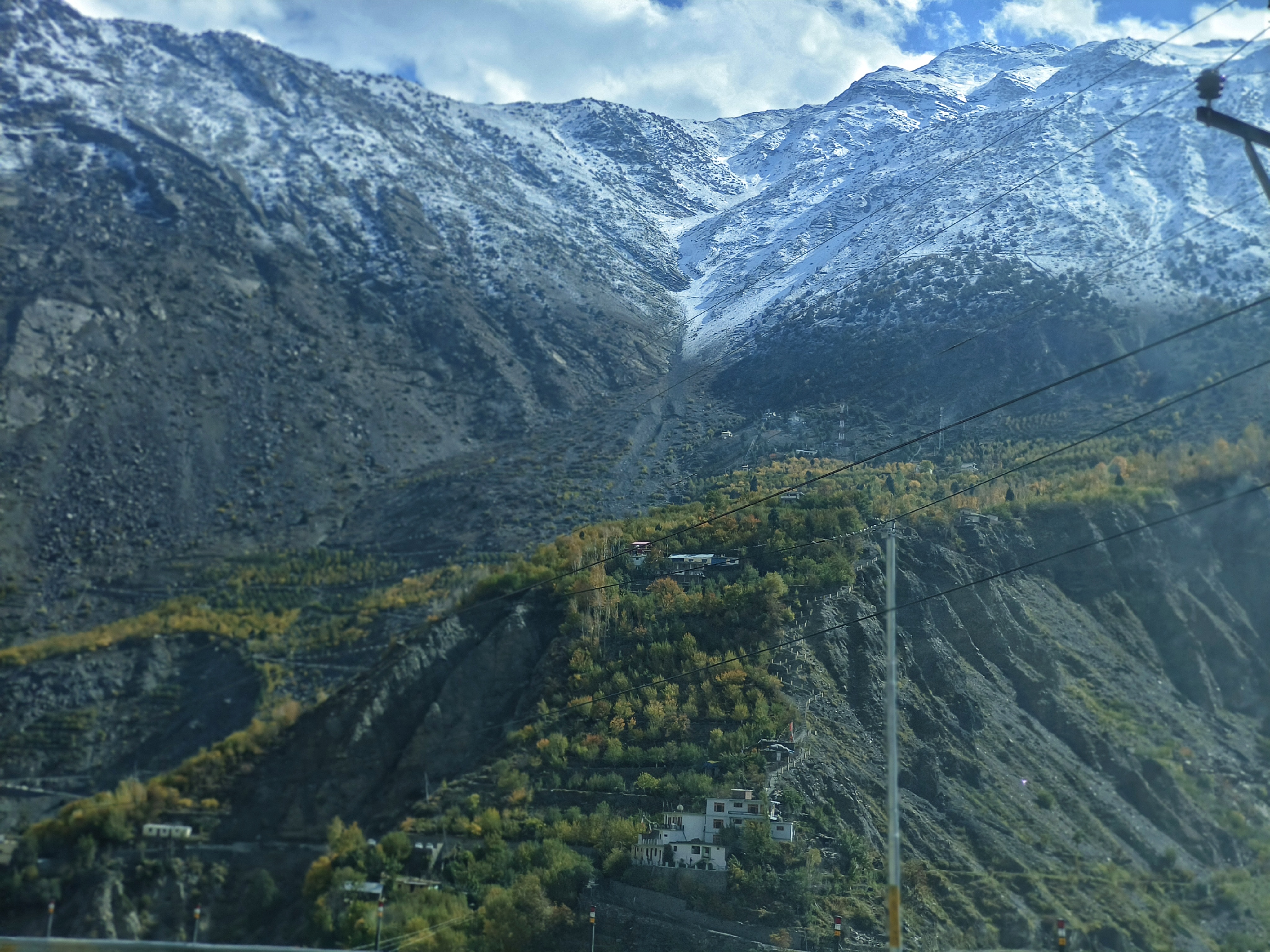 মুরাঙের আগে থেকেই বরফে  মোড়া পাহাড়চুড়ারা সঙ্গ নিয়েছে। কখনো ডানে কখনো বাঁয়ে কখনো সামনে হাতছানি দিয়ে চলেছে।  দুইপাশ এখনো সবুজে সবুজ। কিছু পর্ণমোচি বৃক্ষের উপরের দিকের পাতায় রঙ ধরেছে। কোথাও কোথাও পাহাড়ের ঢাল বরাবর ধাপ কেটে জুমচাষ করা। কিছু ফসল পেকে হলুদ রঙ ধরে গোটা ঢালখানা নকশাদার আসন বানিয়ে রেখেছে।  নাকো (১২০১৪ ফিট)  কল্পার (৯৭১১ ফিট) থেকে প্রায় ৩০০০ ফুট উঁচু।