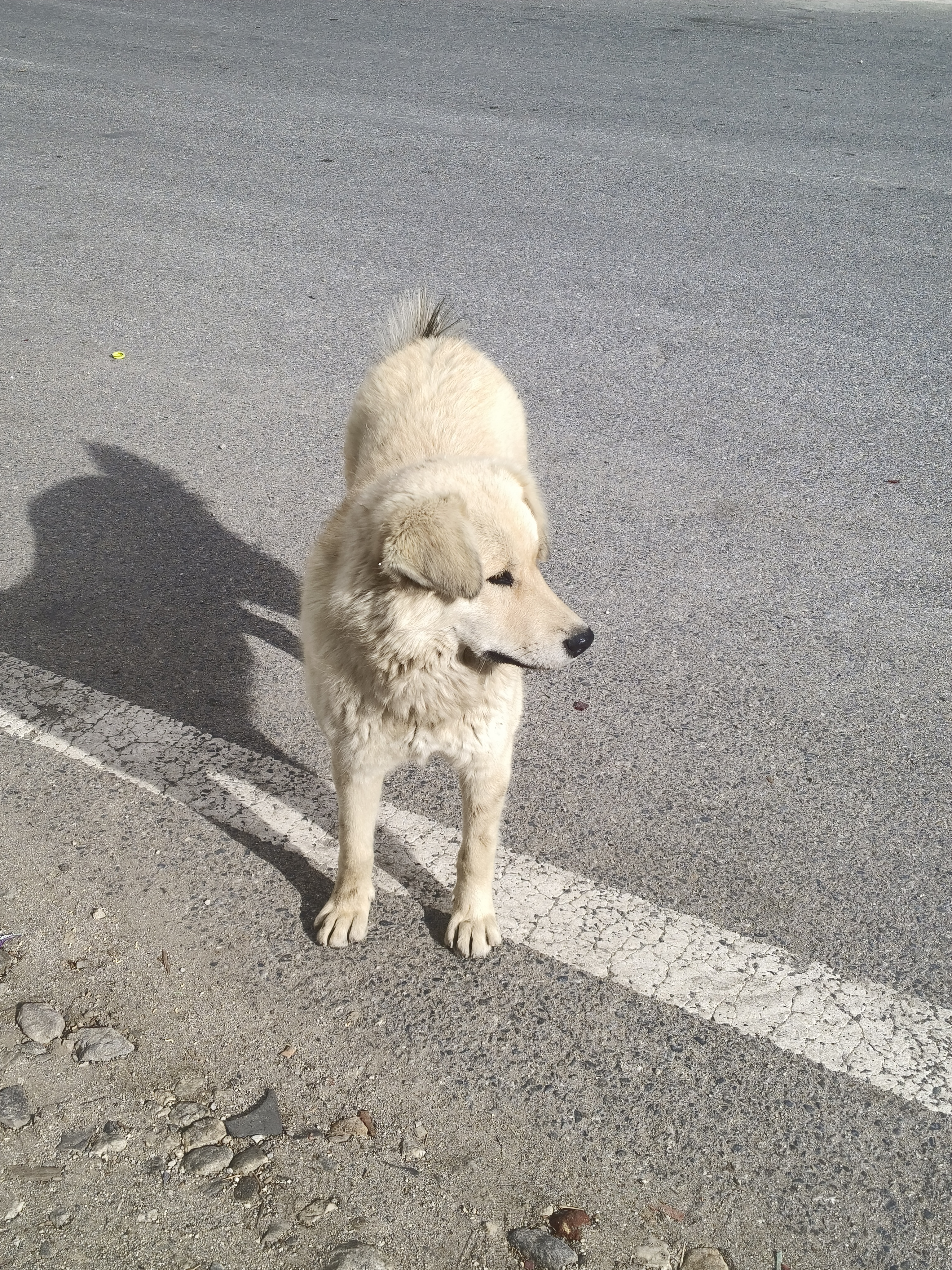 নাকো গোম্পার পার্কিঙে নামতেই ইনি প্রাঙ্গনের অন্যপ্রান্ত থেকে হইহই করে এসে আমাদের অভ্যর্থনা জানিয়ে আমার লাঠির হাতলের স্ট্র‍্যাপ চিবোতে শুরু করেন। পাক্কা ১ মিনিট ধরে নরমভাবে চিবিয়ে খুব অনিচ্ছায় ছাড়েন।