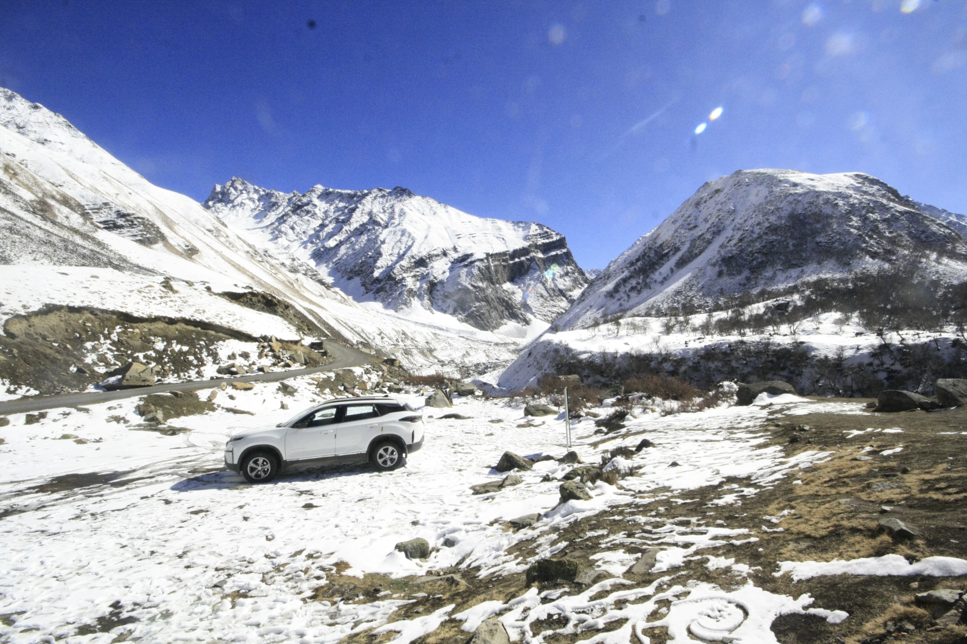 মাঝে মাঝে রাস্তা দিয়ে মিলিটারি ট্রাক চলে যাচ্ছে সৈন্য ও মালপত্র নিয়ে। আগেই বলে দিয়েছে এইসময় ক্যামেরা নামিয়ে নিতে হবে। একটা বাইক এসে থামল। বাইকার দম্পতি নেমেই সিপাহীসাহেবকে জিজ্ঞাসা করলেন তিব্বত সীমান্ত এখান থেকে কতদূর? ওঁরা আবার বাইকে চড়তে যেতেই  এরকম কথোপকথন হল