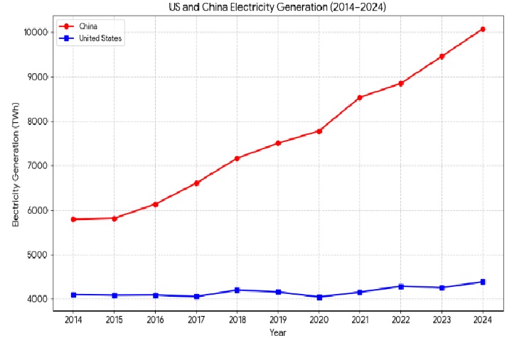 এই ছবিটা দেখাচ্ছেই যে আম্রিকার থেকে তার রিনিউয়েবল সোর্স কাজে লাগিয়ে বিদ্যুৎ উৎপাদনে চীন কতটা এগিয়ে আছে | এখানেই তাই আম্রিকা চাইছে ভেনেজুয়েলার তেল দখল করে তাকে কাজে লাগিয়ে নিজের ইলেক্ট্রিসিটি উৎপাদন বাড়িয়ে AI ডাটা সেন্টার বাড়িয়ে চীনকে হারাতে |