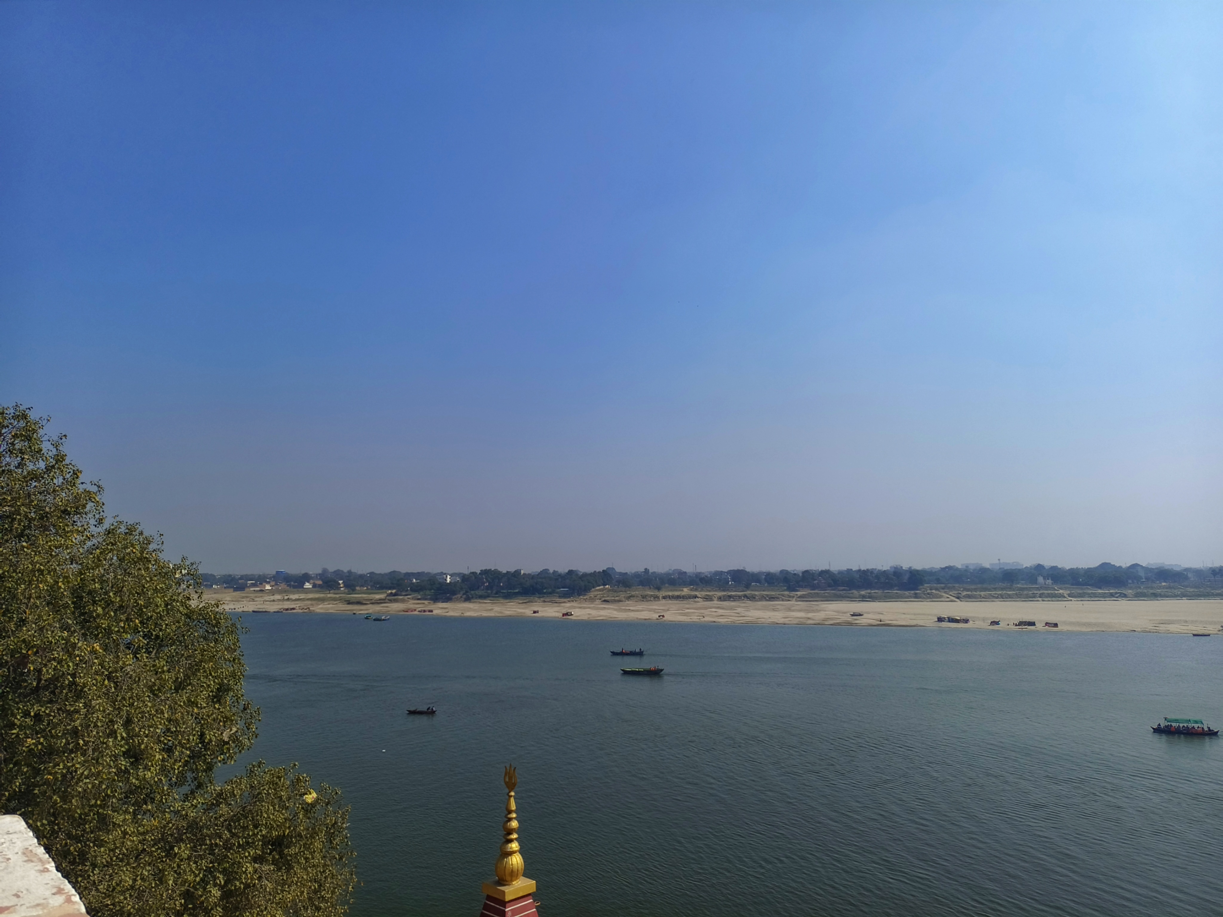 আ: শান্তি।  এটা হোটেল নয়, হোমস্টে টাইপ। তবে খাবারদাবার পাওয়া যায় না। আগের লোকেরা যাবার পরে বিছানার চাদরটা বদলেছে বলে মনে হল না, স্রেফ ঝেড়ে দিয়ে দিয়েছে। আরেক সেট চাদর ওয়াড় ইত্যাদি চেয়ে নেওয়া গেল। বেলা পৌনে একটা বাজে।  দুজনের দাপট দেখে হোটেলের সেই ছোকরা তখন যাহা বলিবেন তাহাই করিব মোডে বিনয়ের অড়রডাল হয়ে দাঁড়িয়ে। সেই দেড়টার সময়  খাবার এনে দেবে বলে অর্ডার নিয়ে গেল।  তারপর তো আরাম করে স্নান টান করে খেয়েদেয়ে দুজনে ঘুম লাগালেন। বাইরে তখন চাঁদিফাটা রোদ্দুর। গঙ্গার জল হিন্ডোলিয়ামের পাতের মত ঝকঝক করছে। বেলা পড়লে উঠে বেরোন যাবে।
